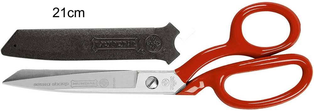 TESOURA MUNDIAL AÇO FORJADO - COSTURA - CABO ERGONOMICO E PINTADO DE VERMELHO - FIO MICROSERRILHADO - ACABAMENTO NIQUELADO - 270SR
